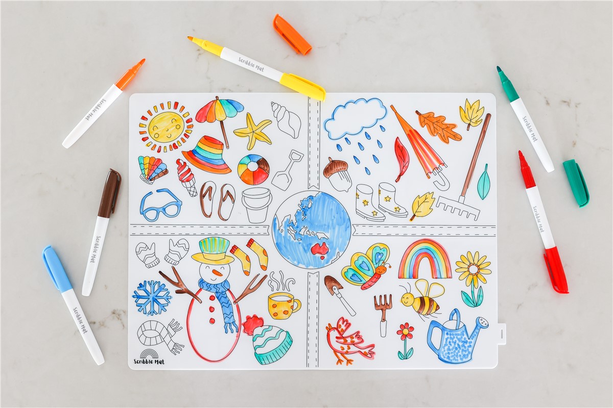 Scribble Las Estaciones – Tapete reutilizable para colorear – Scribble – Incluye 6 rotuladores
