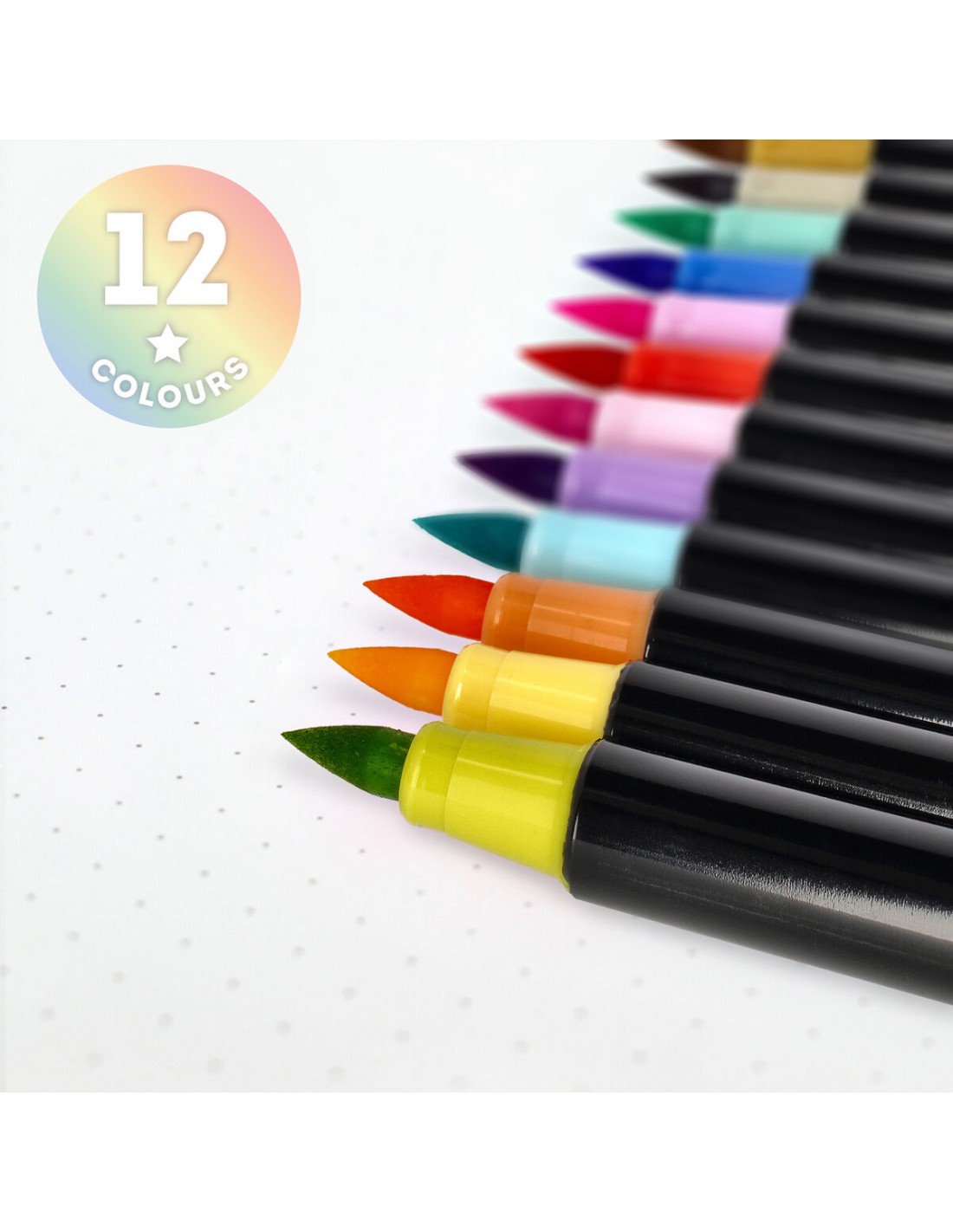 Set de 12 rotuladores de punta de pincel en colores pastel de Legami, perfectos para lettering, decoración de agendas, bullet journal y proyectos creativos.