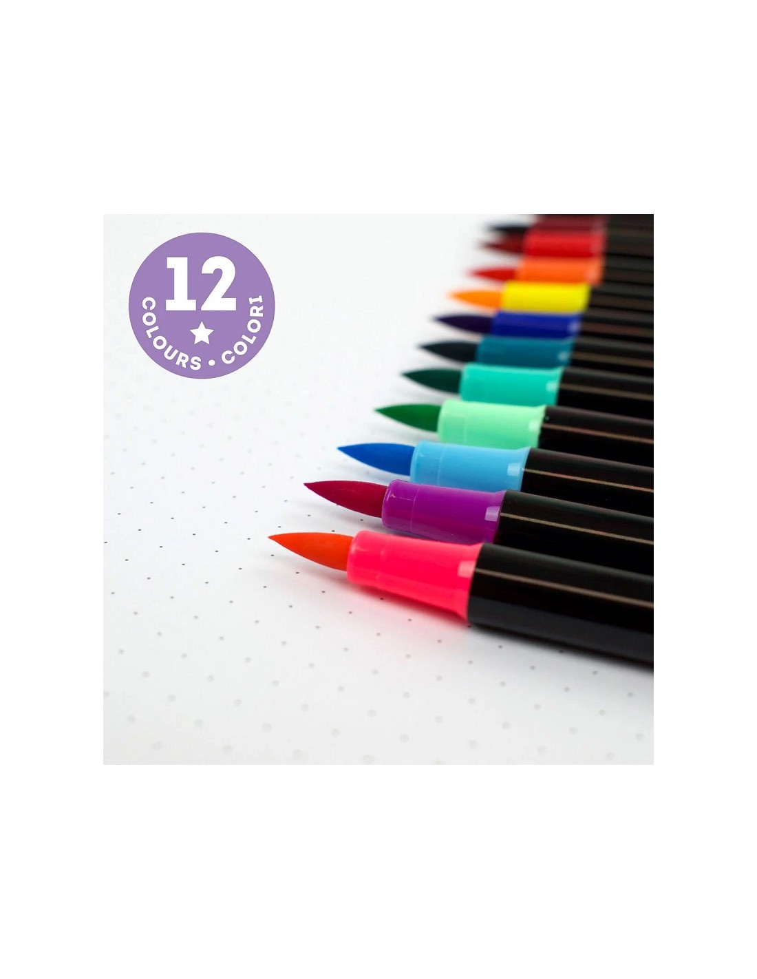 Set de 12 rotuladores con punta de pincel de Legami, ideales para lettering, dibujo artístico, decoración y bullet journal. Colores vivos y acabado profesional.