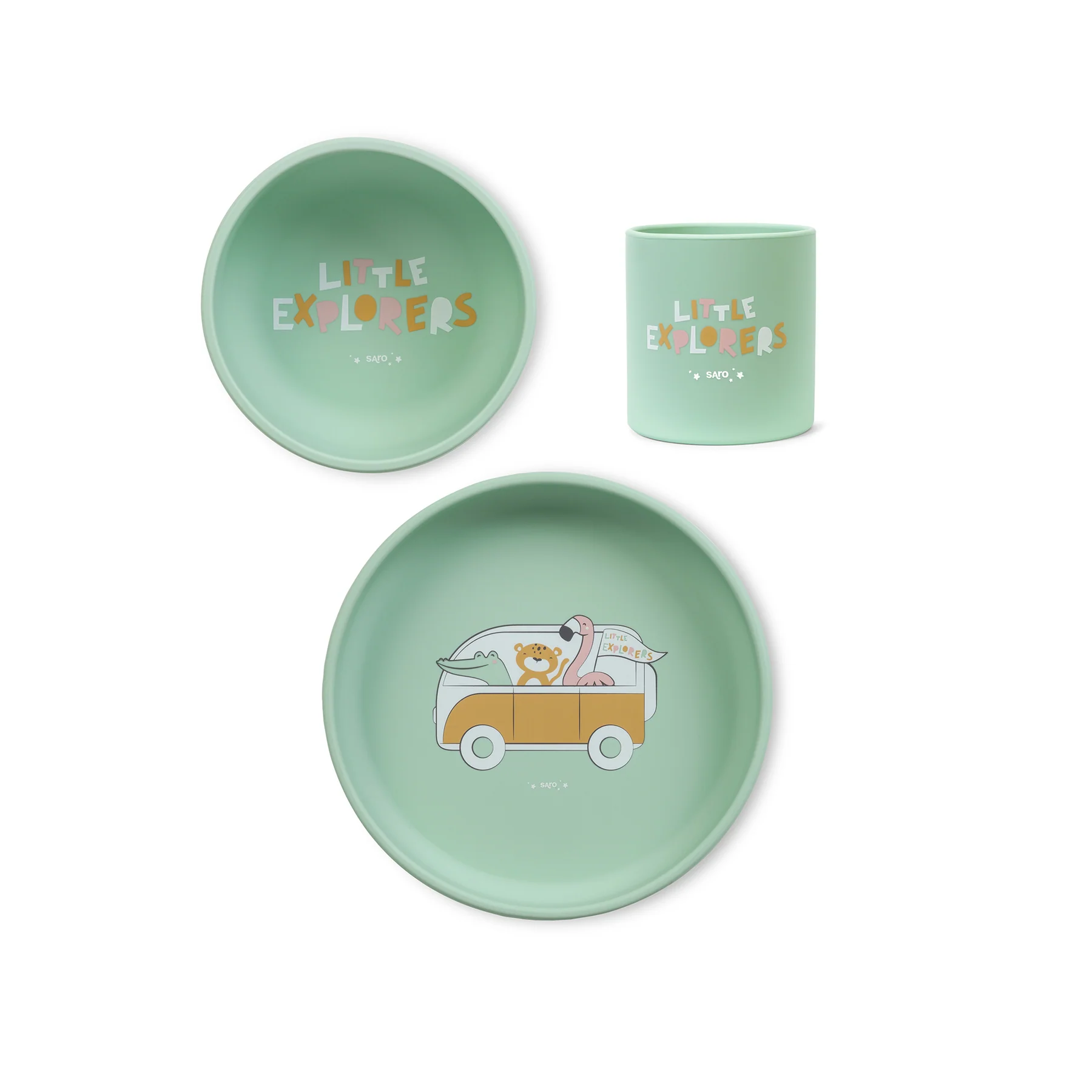 Set de alimentación Foodie Little Explorers – Vajilla infantil de silicona – Saro – Plato cuenco y vaso