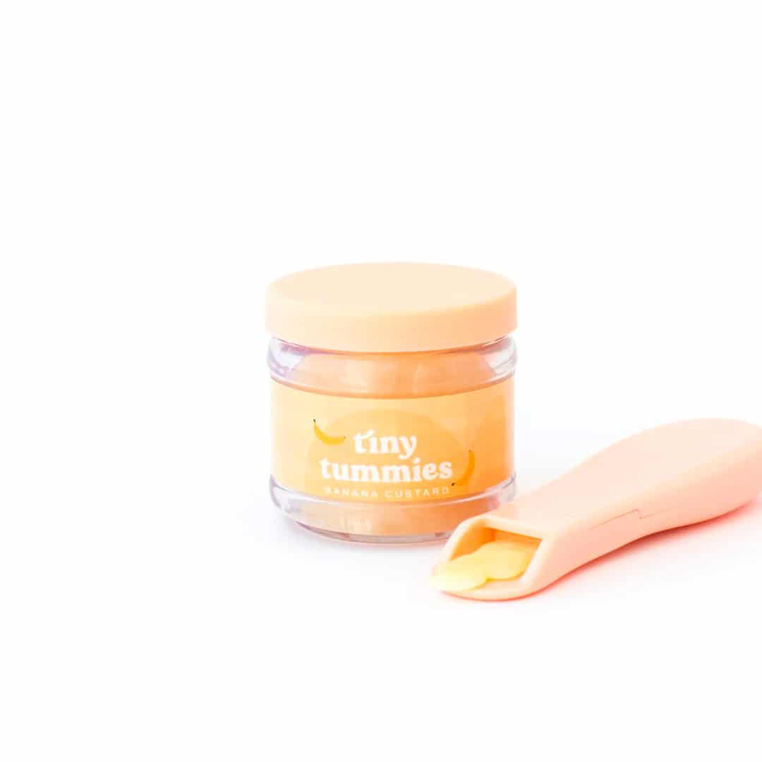 Haz tu pedido hoy y deja que la imaginación cobre vida con el Set de Tarro y Cuchara Potito de Plátano para Muñecos.