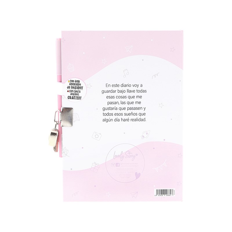 Celebra la magia de la Primera Comunión con este encantador set de diario y bolígrafo de la colección Lovely Story. El diario cuenta con tapa dura y un diseño atractivo en color rosa, acompañado de un bolígrafo a juego.