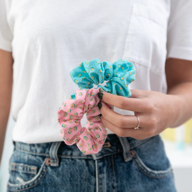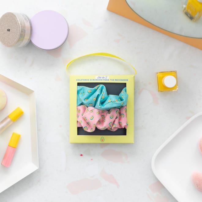 Set de 2 coleteros tipo “scrunchie” con estampado de aguacate Wonder.