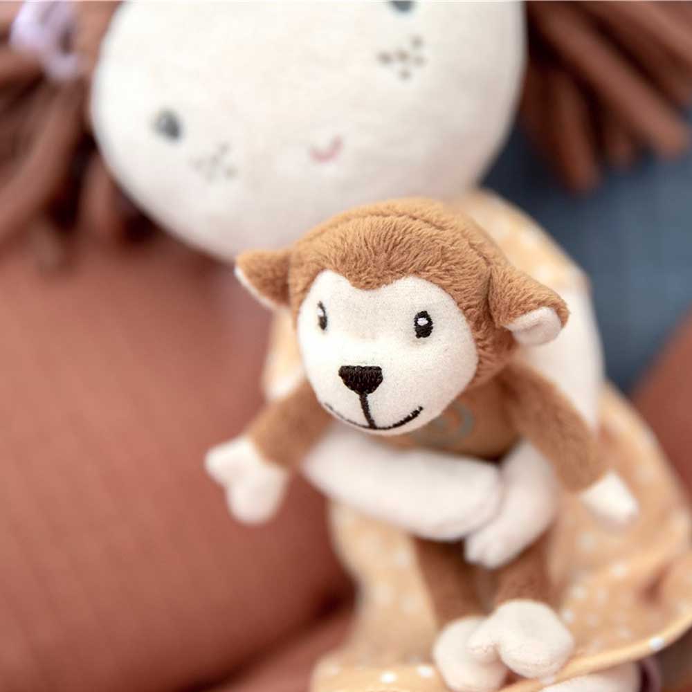 ¡Hola! Mi nombre es Sophia y soy tu nueva amiga. Con el monito en una mano y tú en la otra, podemos lograr cualquier cosa. ¡Nos mantenemos fuertes juntos!