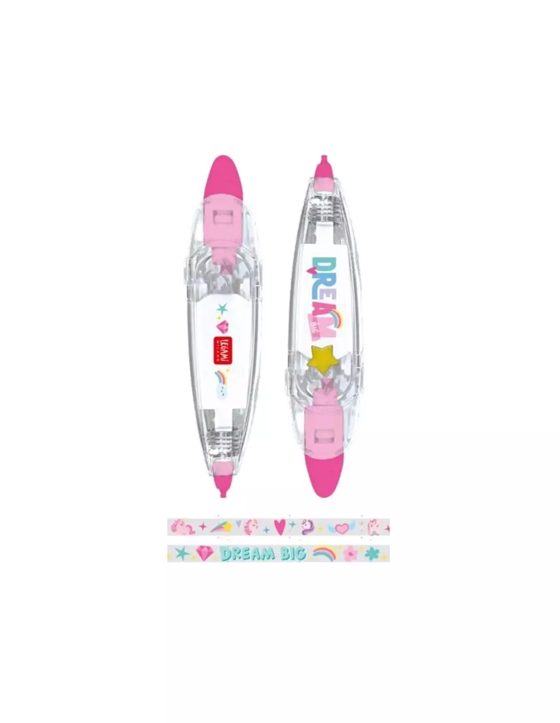 Este bolígrafo de cinta decorativa de Legami, con diseño de unicornio, es perfecto para personalizar tus agendas, tarjetas y cuadernos. Incluye 2 cintas de 4 metros con motivos diferentes sobre fondo transparente.