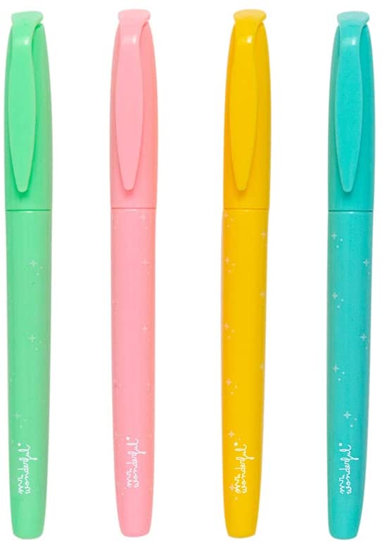 Set de 4 subrayadores en tonos pastel que se presentan en un bonito estuche transparente con mensaje en inglés.