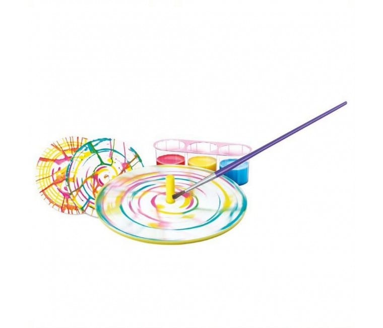 – Incluye: 1 peonza (10 cm de diámetro), 20 discos de papel, 1 tira de pintura, 1 pincel de pintura, 1 bandeja de mezcla de pintura e instrucciones con ideas para aplicar el arte giratorio y hacer diferentes obras de artesanía.