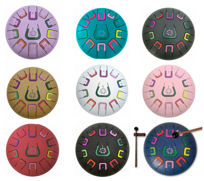 Este tambor destaca por su sonido suave, envolvente y siempre agradable, ya que sus 11 notas están afinadas para que ninguna melodía suene mal. Es un instrumento intuitivo, accesible para principiantes y muy valorado en musicoterapia por su capacidad para favorecer la concentración, la calma y la autoexpresión. Además, incluye partituras en colores y números compatibles con el método Montessori, para facilitar el aprendizaje desde el primer día.