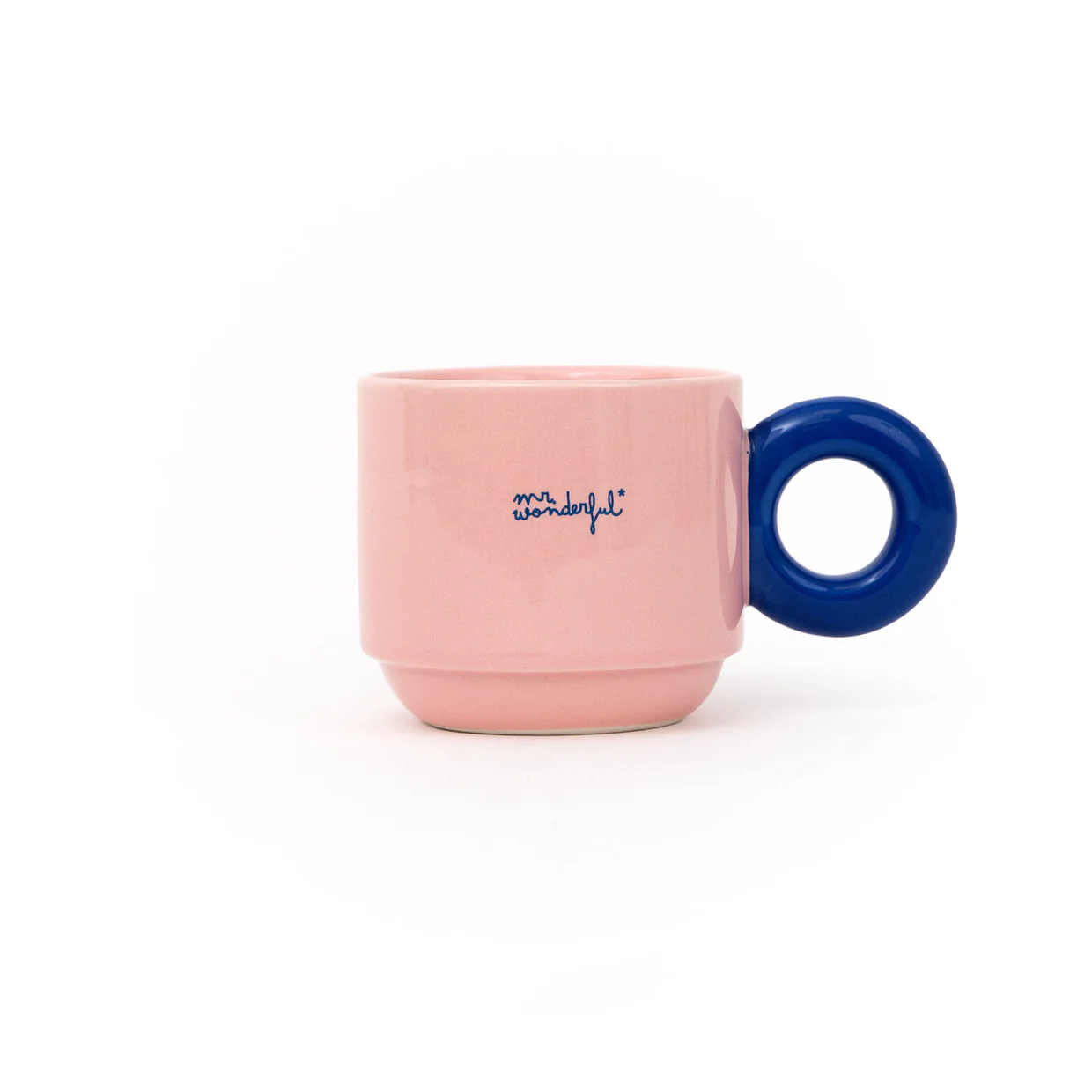 La taza apilable Mamá se levanta así de fabulosa de Mr Wonderful es el detalle perfecto para sorprender con humor y cariño. Su diseño en color rosa con asa redonda azul y el divertido mensaje la convierten en una taza única y muy especial.