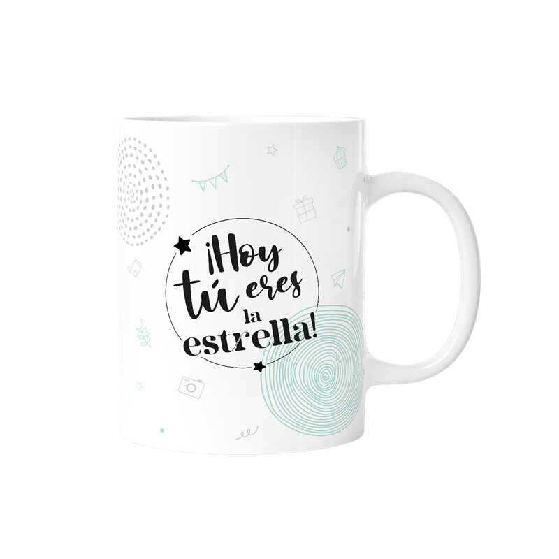 • Diseño: Taza con mensaje grabado «¡Hoy tú eres la estrella!»