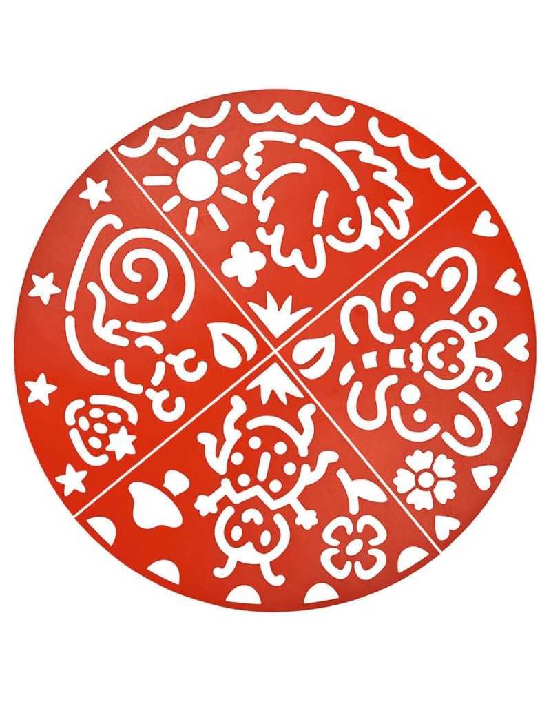 Set de 4 plantillas y 6 tizas brillantes en diferentes colores. Las plantillas pueden usarse individualmente o combinarse para formar un gran círculo de 58 cm de diámetro.