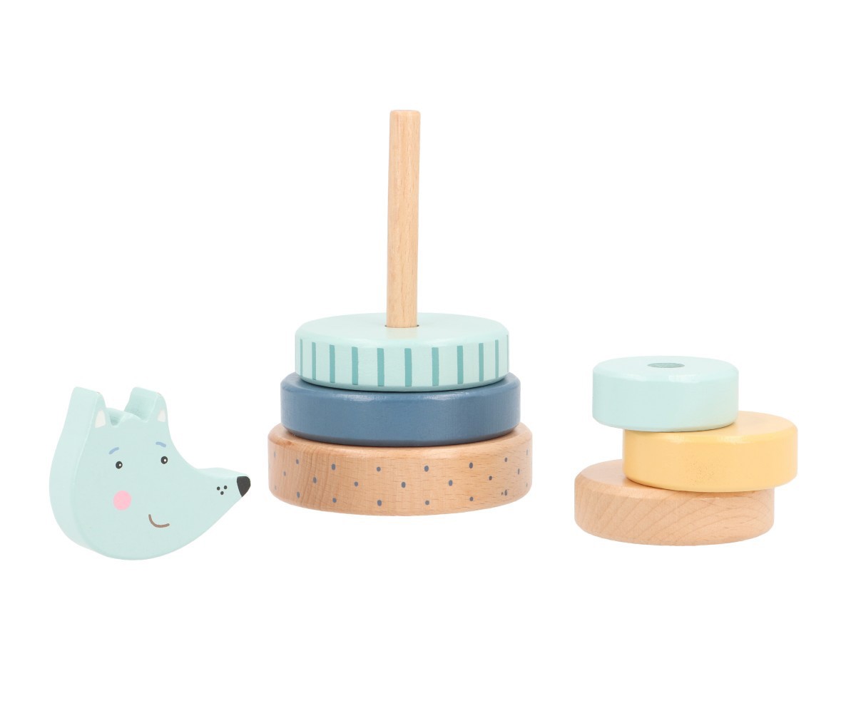 La Torre Apilable Wolf Personalizable de Monnëka es un encantador juguete de madera diseñado para acompañar el crecimiento y desarrollo de los más pequeños. Inspirado en el simpático lobo del bosque, este apilable combina juego, aprendizaje y decoración en una pieza única.