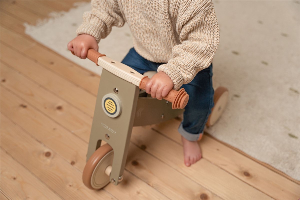 Triciclo de Madera Oliva FSC Little Dutch – Diseño Elegante y Seguro