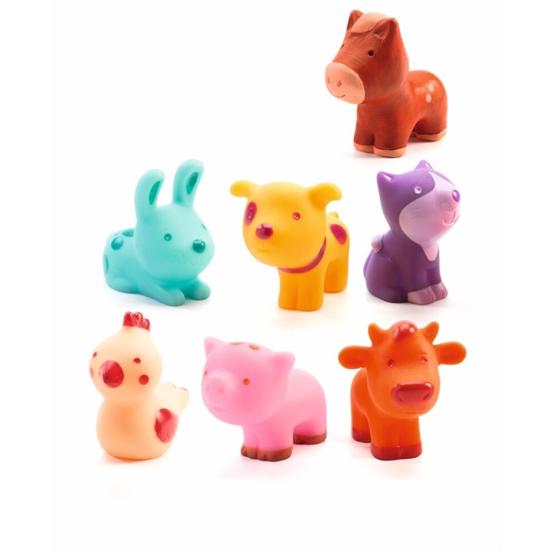 7 animalitos de la granja: cerdito, gallina, vaca, conejo, perrito, gato y caballo.