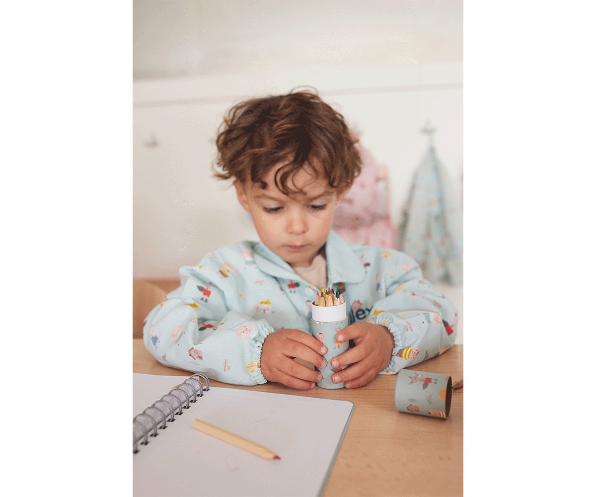 Incluye 12 lápices de colores en un tubo de cartón decorado con ilustraciones de la colección Geometric Nature, pensado para manos pequeñas. Con un tamaño ideal para facilitar el agarre, los niños podrán disfrutar coloreando con total comodidad y seguridad.