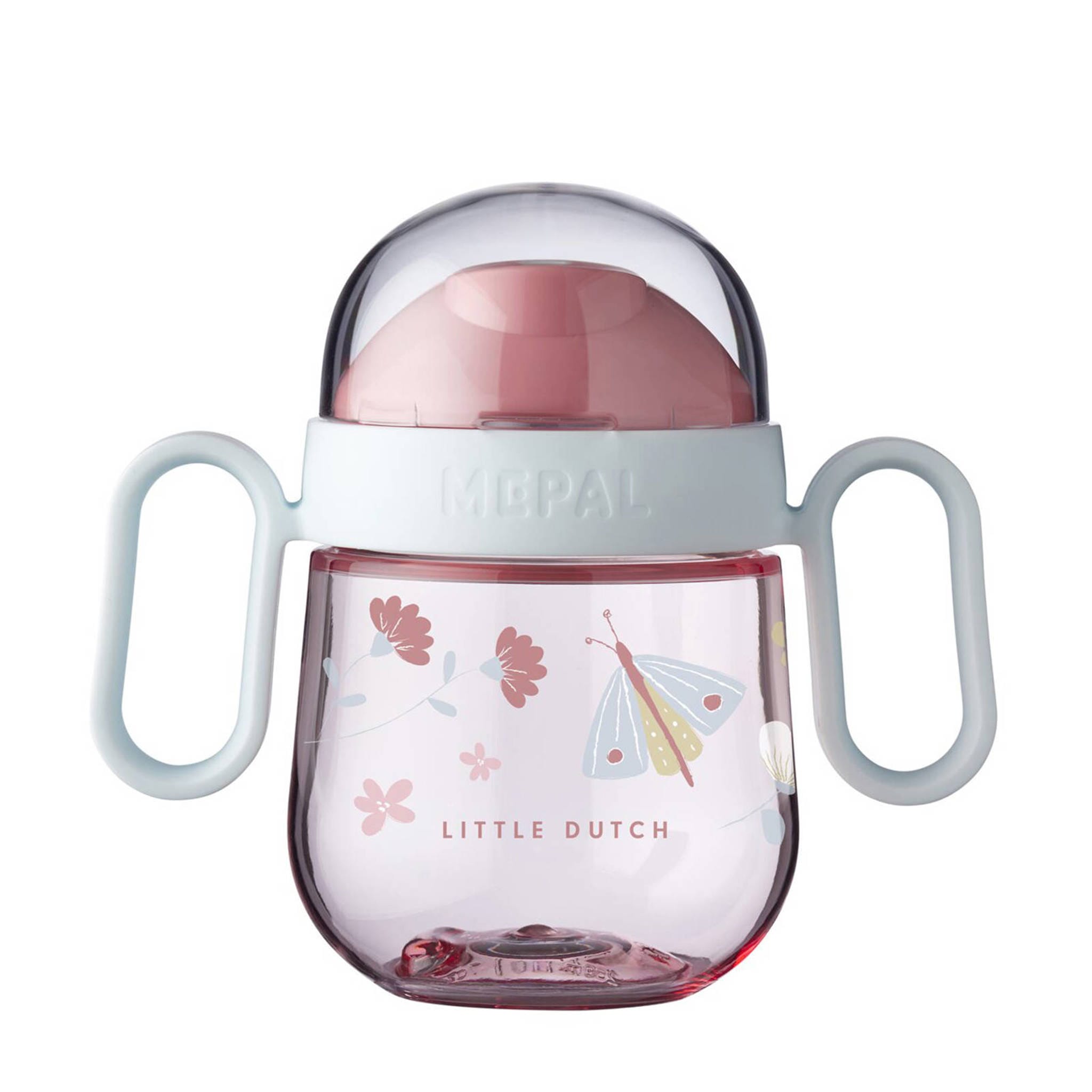 ¡Recógelo, propina y bebe! Cuando su bebé esté listo para la transición del biberón o el pecho a una taza adecuada, la taza con sorbos antiderrame Mepal Mio es la perfecta. Puede tomar algunos intentos, pero este diseño hace que sea un poco más fácil aprender a beber de una taza. Hay dos brotes, así que duplica la posibilidad de apuntar bien. ¡Y es a prueba de fugas! Ya sea que su bebé lo sostenga boca abajo o de lado, no se derrama. Las dos asas hacen que la taza sea fácil de sostener con las manos pequeñas de los bebés. Este vasito para sorber está decorado con las ilustraciones de la colección Flowers & Butterflies para animar a tu pequeño.