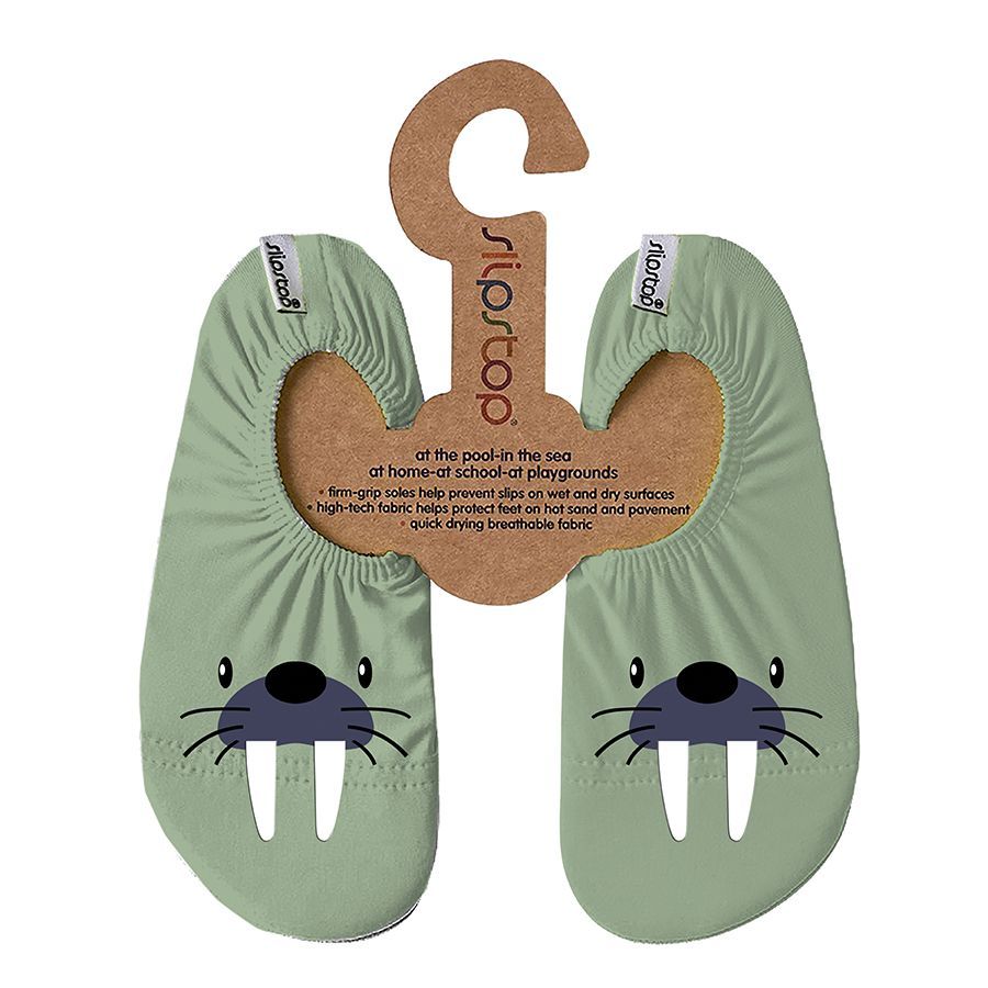 Las Zapatillas Antideslizantes Mors de Slipstop ofrecen protección y comodidad para los pies de los más pequeños en cualquier aventura. Su bonito diseño en verde suave con cara de morsa y colmillos las convierte en un modelo original y divertido.