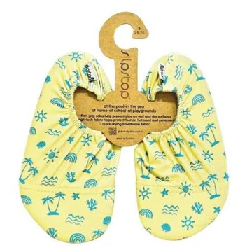 Las zapatillas antideslizantes Palms Neon de bt.box son perfectas para proteger los pies de los peques mientras juegan y disfrutan del agua. Su diseño en color amarillo con palmeras, soles y motivos veraniegos aporta un estilo alegre y tropical.