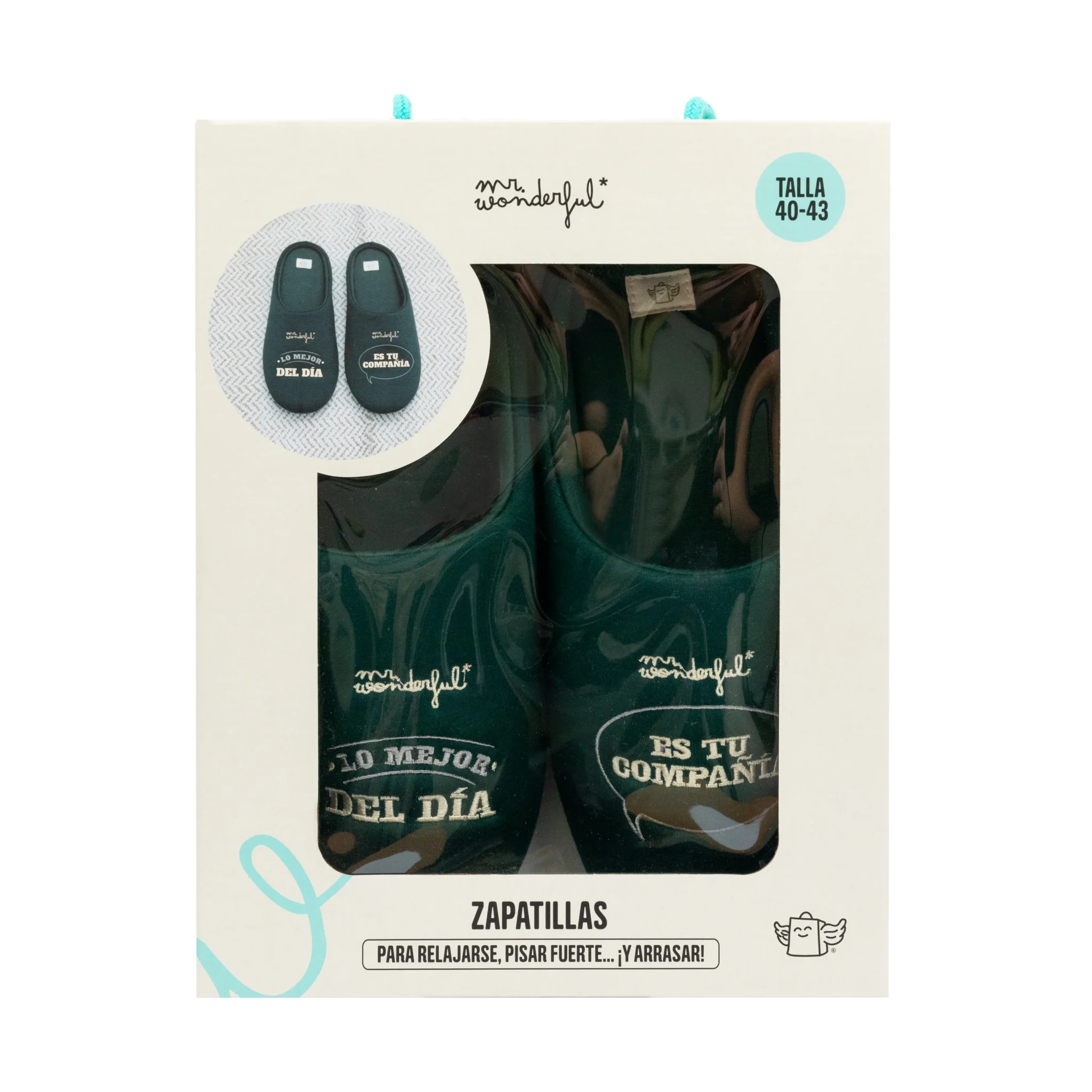Después de un largo día, no hay nada mejor que llegar a casa y ponerse unas zapatillas cómodas y acogedoras. Las Zapatillas Lo Mejor del Día es tu Compañía de Mr. Wonderful son el regalo perfecto para papás que disfrutan de los pequeños placeres de la vida.